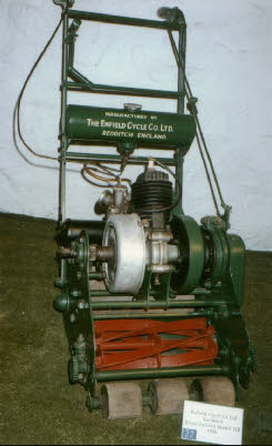Royal Enfield were famous for their motorbikes. In its lawnmower advertisements is was described as being 'BUILT LIKE A GUN'.